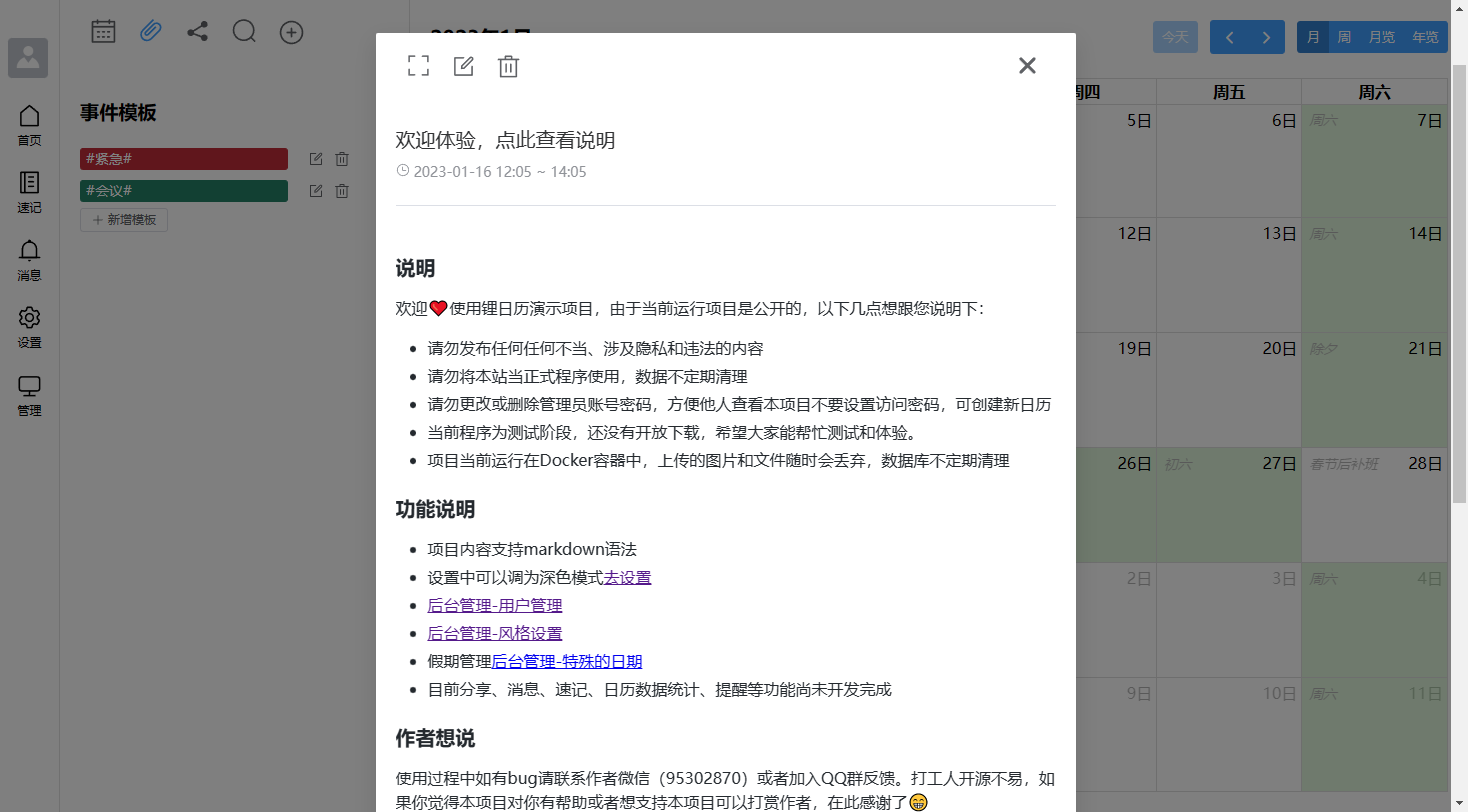 年初 基于 Gin+Vue3+ElementPlus UI开发「Li Calendar - 锂日历记事本」(日历记事本GO版本)