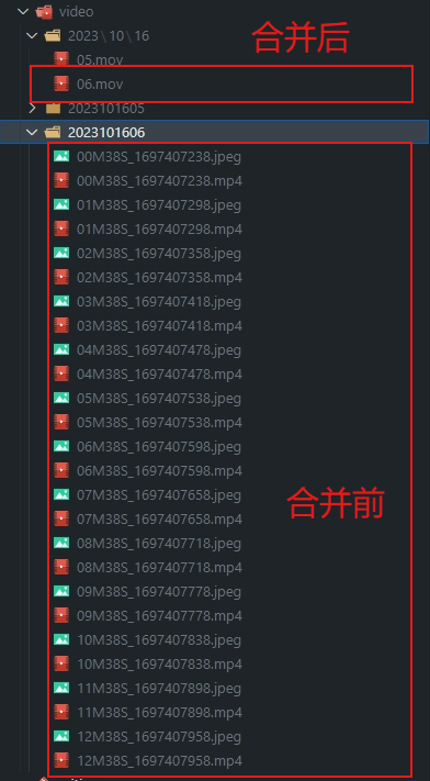 go程序通过代码,调用开源ffmpeg(用于生成处理多媒体数据的各类库和程序)程序来实现视频的合并转存。将一分钟一个视频合并为以小时为一个视频进行保存按天保存