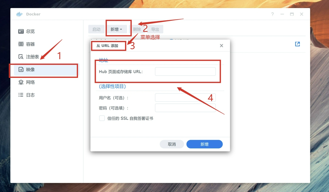 回到docker点击容器,点击新增容器,选择刚刚下载的镜像,不要勾选启用自动重启。