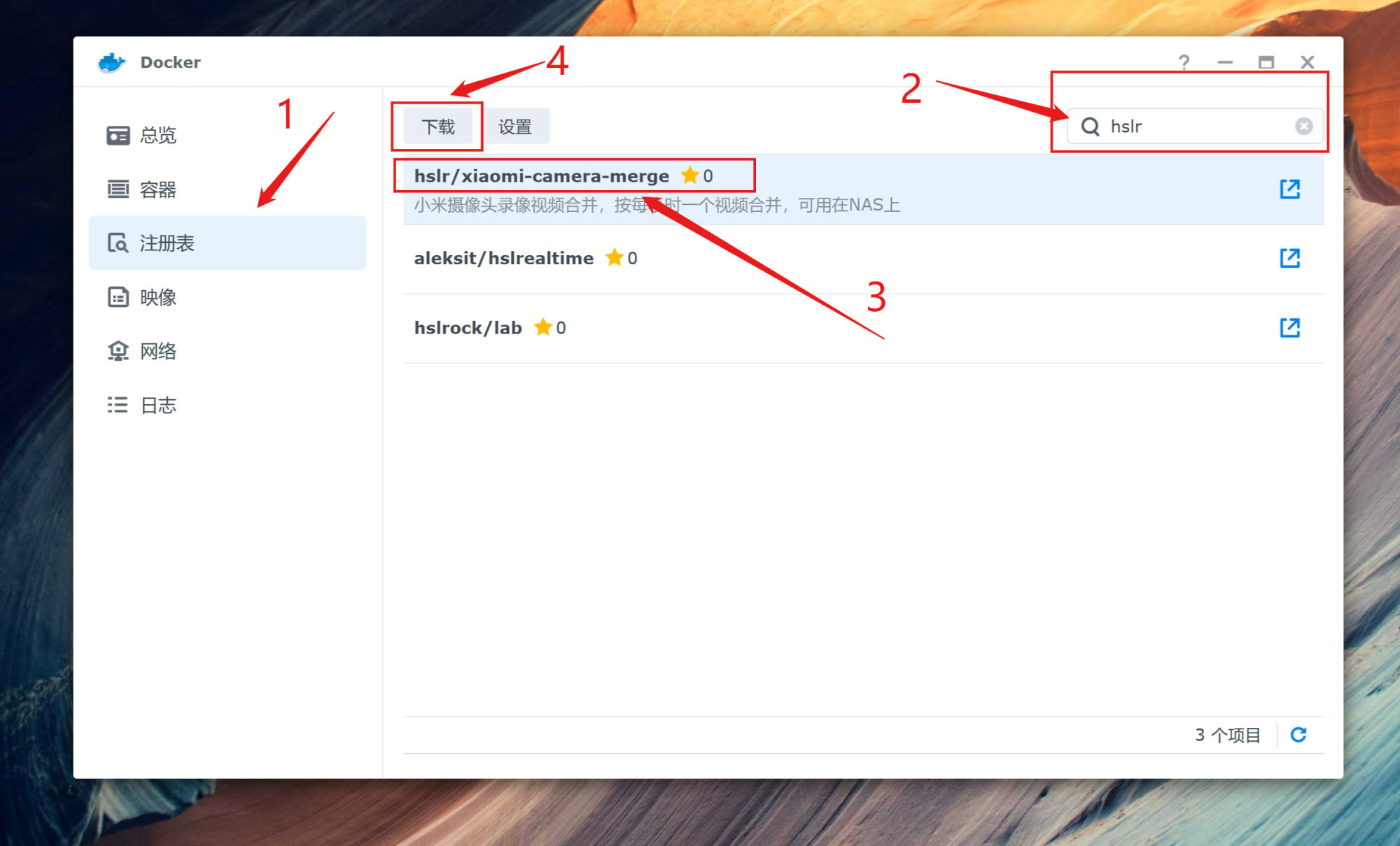 镜像地址:https://registry.hub.docker.com/r/hslr/xiaomi-camera-merge/