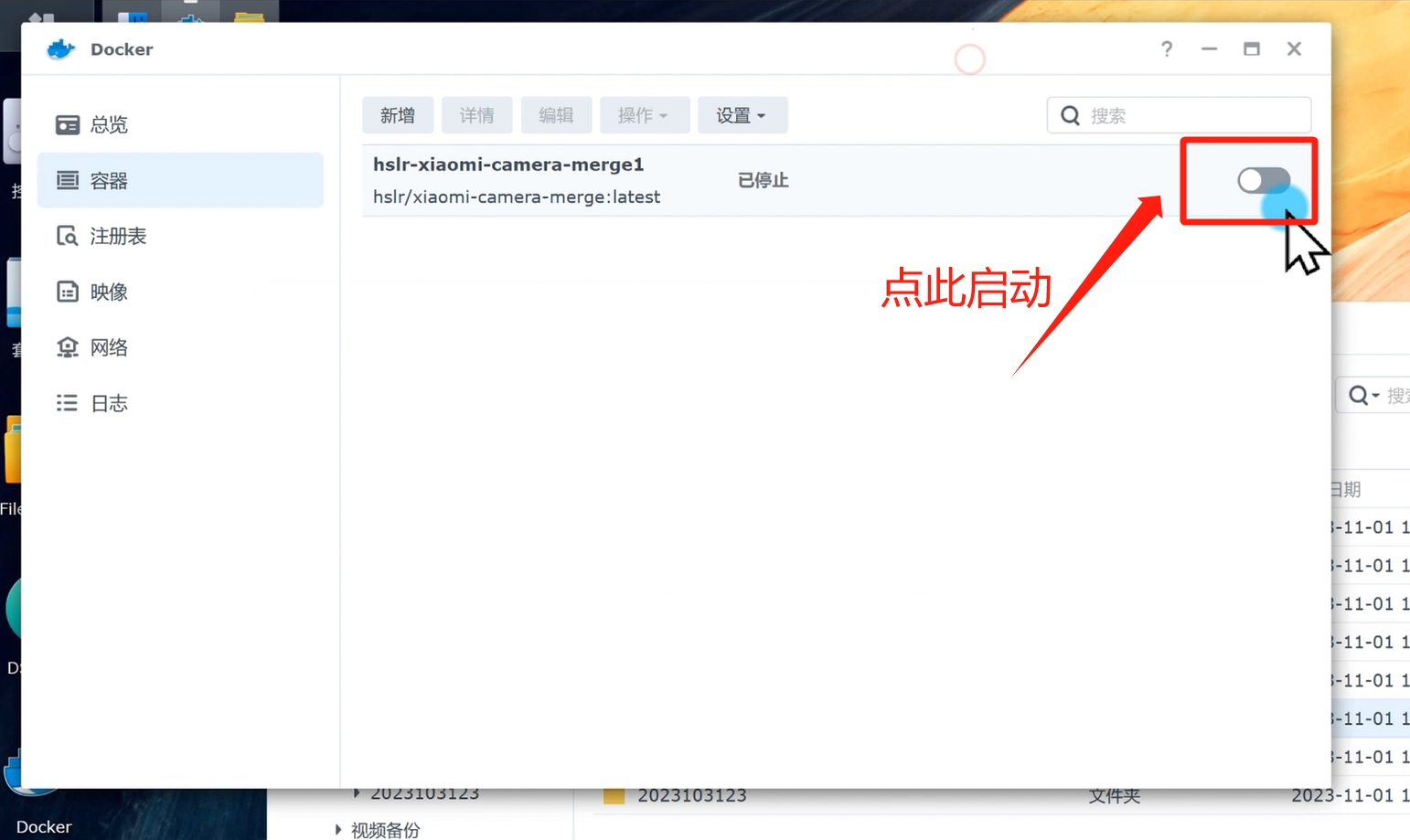 回到容器页面,当我们每次,想合并视频的时候,就点击启动按钮即可。运行完成,容器会自动关闭,群晖会通知,意外停止,不用在意,正常的情况就是运行完就会关闭容器,这个容器不需要长期运行,仅是在我们需要合并的时候启动