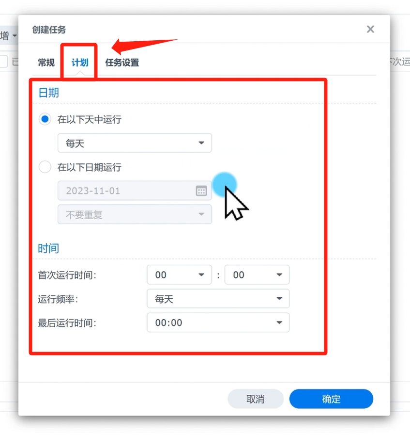 然后点击,计划,设置执行的时间,一般在半夜凌晨,根据自己需求设置