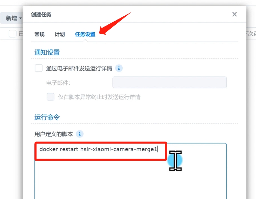 然后点击,任务设置。通知设置根据自己需求填写。在用户自定义脚本下面填入,代码