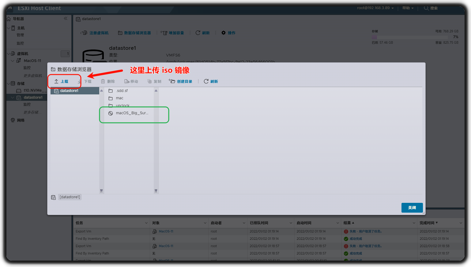 tar.gz格式的包。ISO 格式的数据储存 的目录(一定是数据储存 datastore* 的目录,这里我踩了一个坑,上传到了根目录)储存 -> datastore1 ->找到 位置 就是ssh中所需的路径了