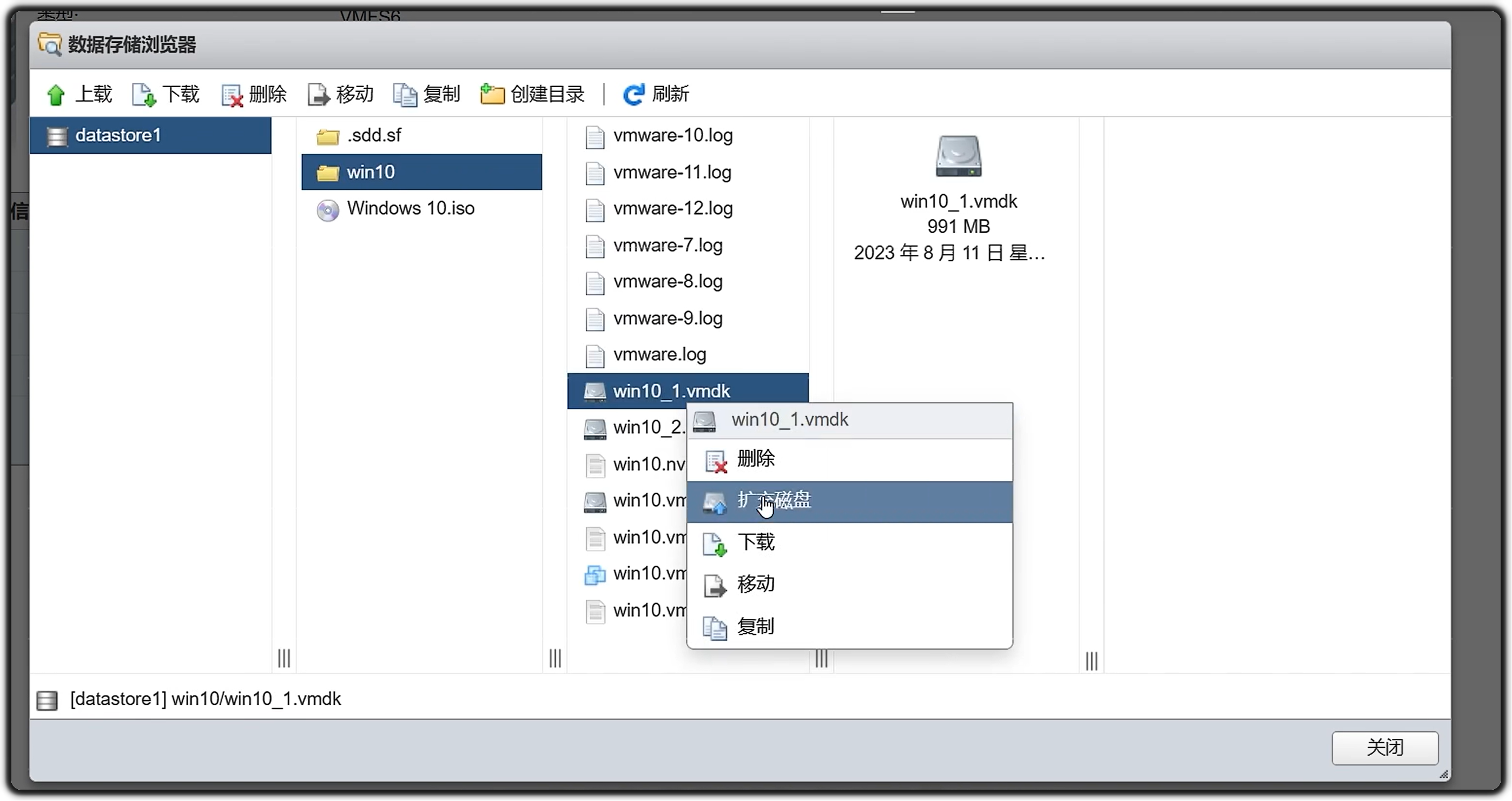 然后删除源硬盘 win10_1.vmdk(磁盘的链接文件) 和 win10_1-flat.vmdk(真正的虚拟磁盘文件)